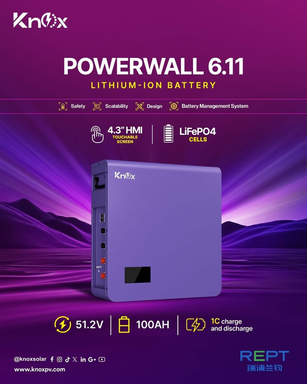 The Knox Power Wall 6.11 is a 5.12kWh, 51.2V 100Ah wall-mounted lithium-ion battery designed for safe, scalable, and efficient energy storage. Built with long-life LiFePO4 cells and an advanced BMS, it supports up to 15 units in parallel and integrates easily with major inverter brands via RS485 and CAN. Its sleek IP20-rated design features a 4.3″ touch LCD screen for easy monitoring, wide operating temperatures, and zero maintenance, making it ideal for solar, backup, or off-grid applications